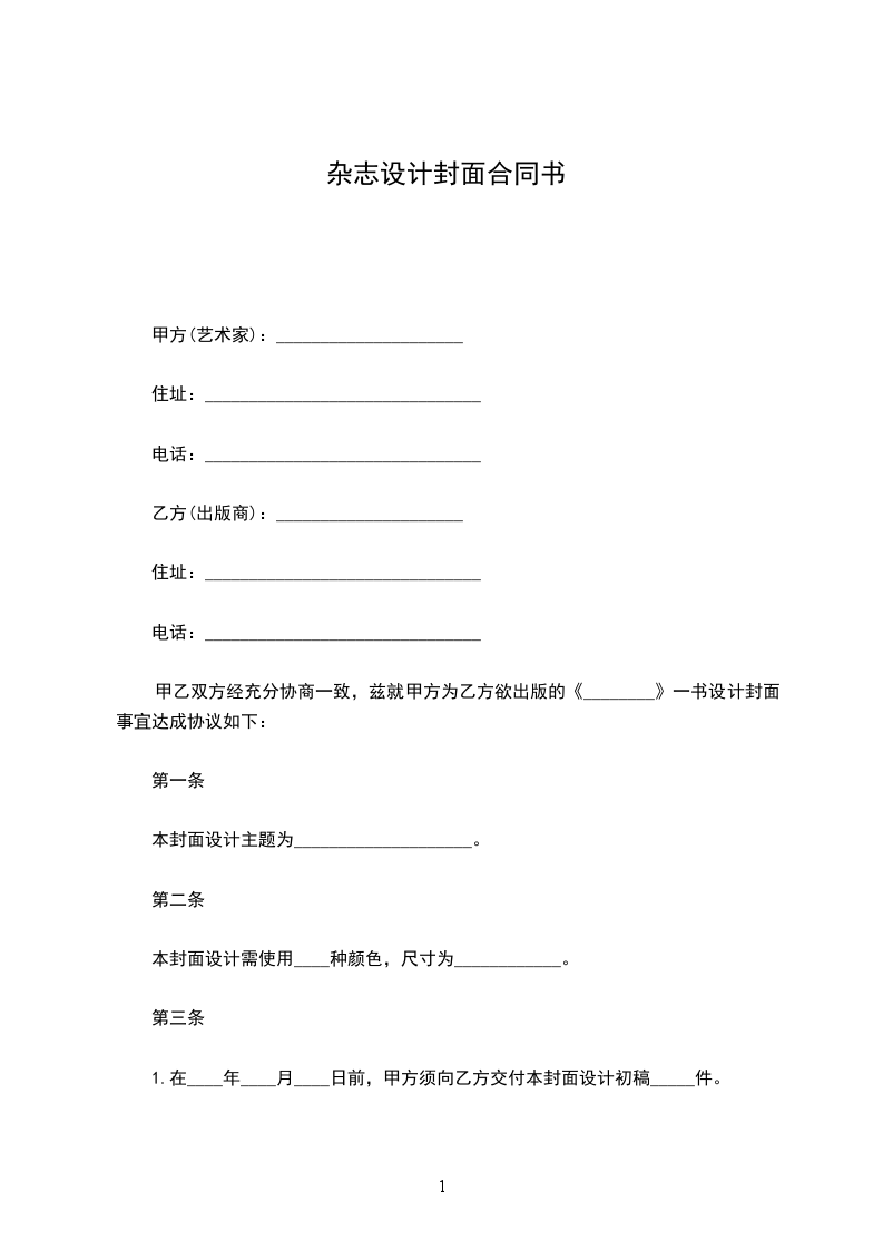 1.在____年____月____日前,甲方须向乙方交付本封面设计初稿_____件。