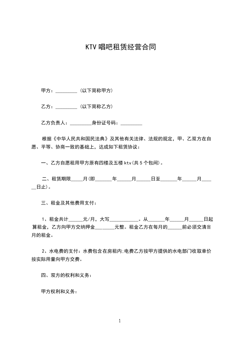 一、乙方自愿租用甲方原有四楼及五楼ktv(共5个包间)。