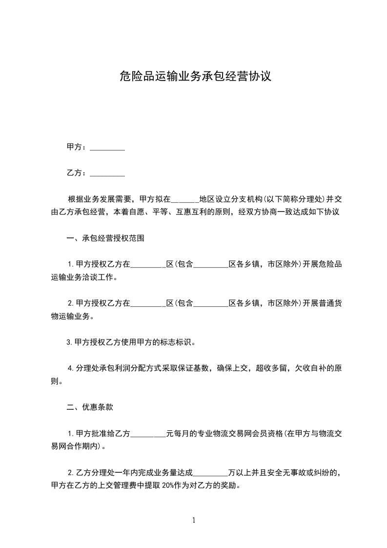 1.甲方授权乙方在_________区(包含_________区各乡镇,市区除外)开展危险品运输业务洽谈工作。