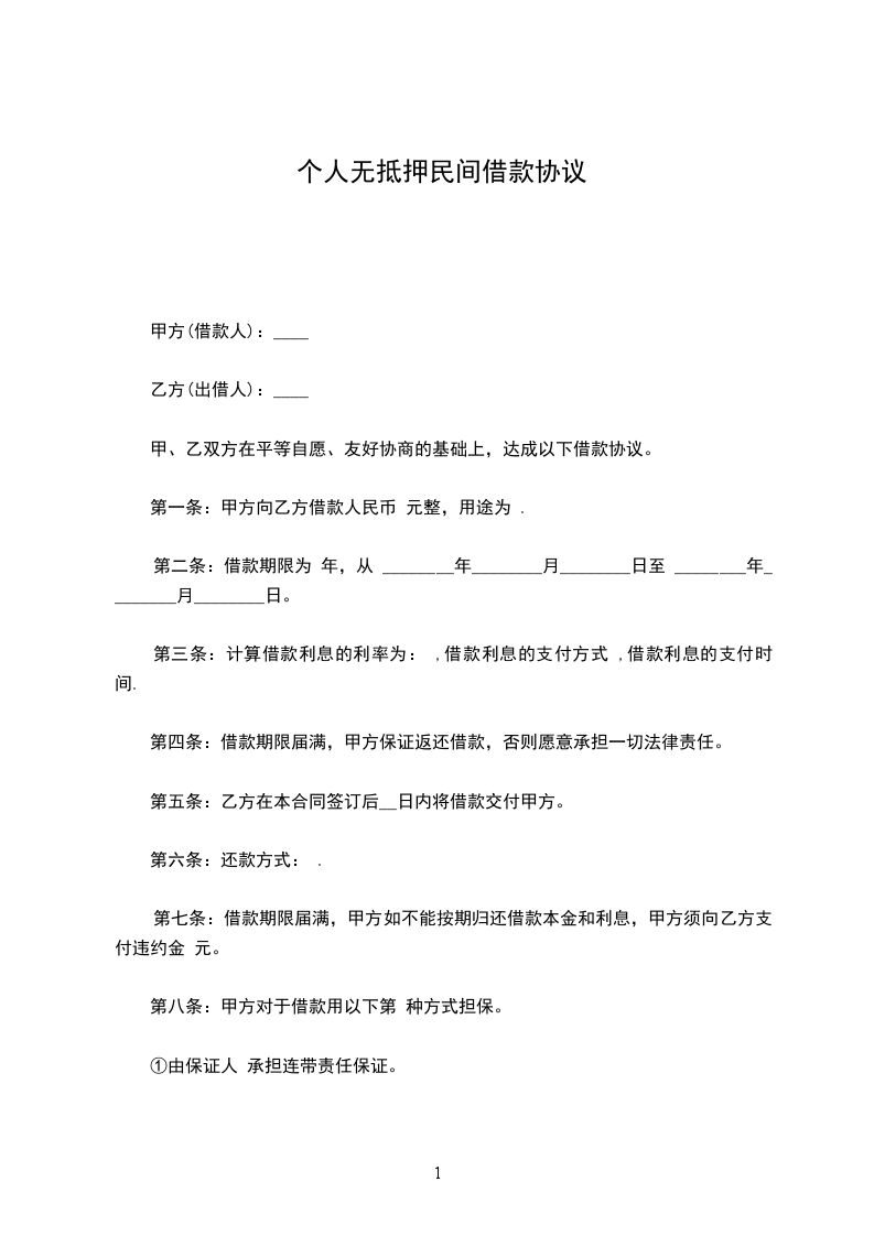 第一条:甲方向乙方借款人民币 元整,用途为 .