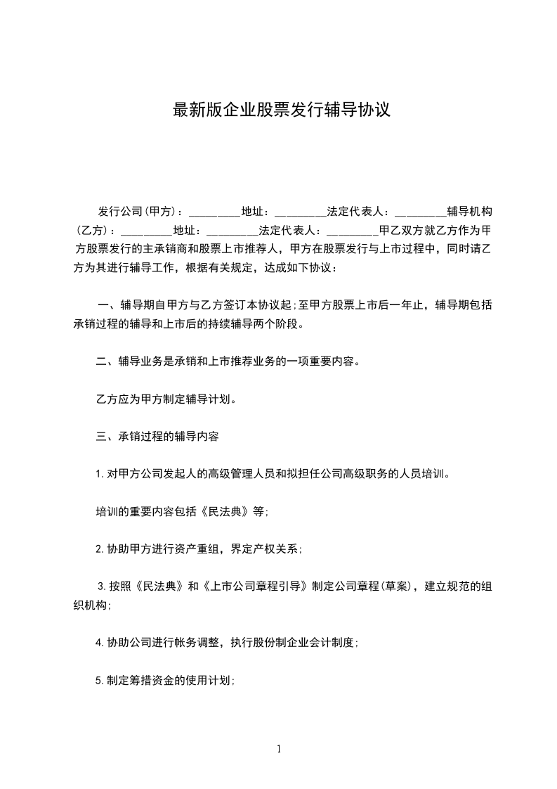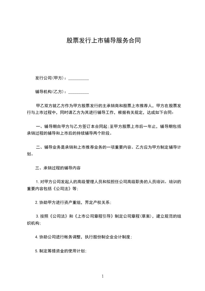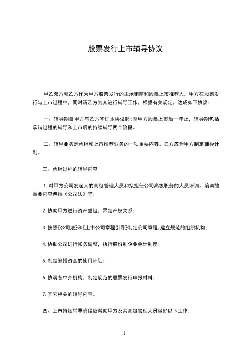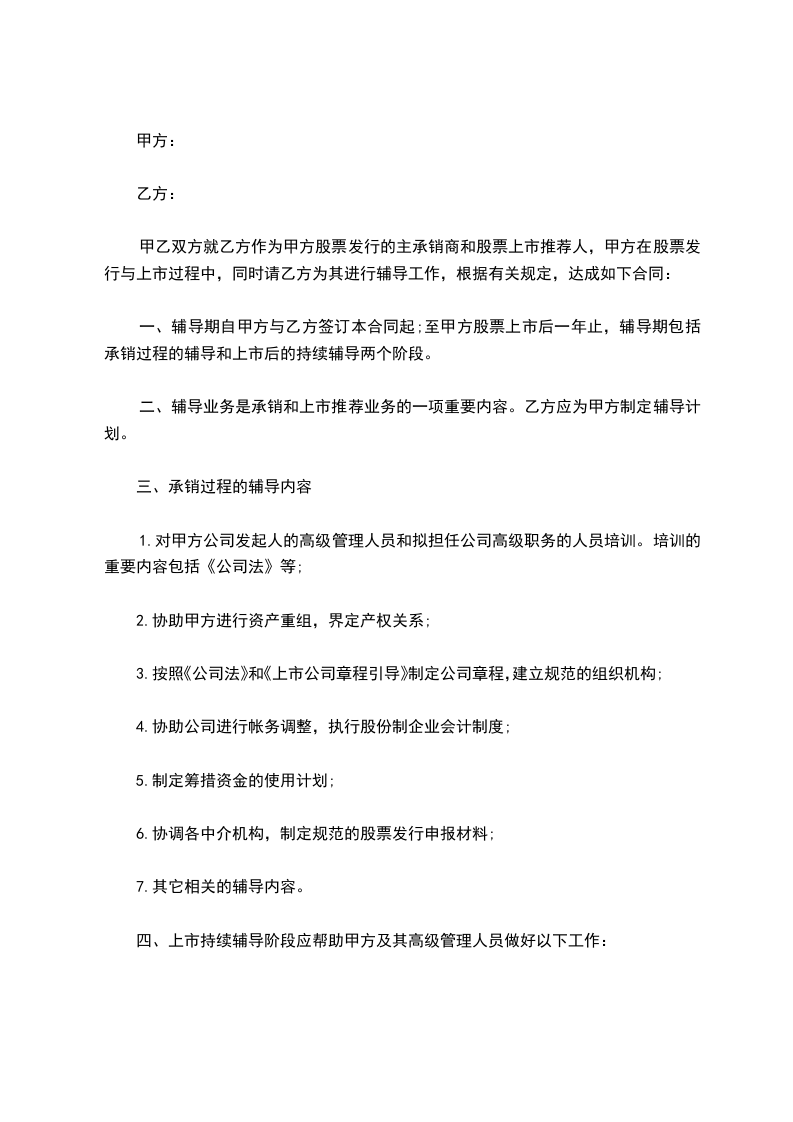 一、辅导期自甲方与乙方签订本合同起;至甲方股票上市后一年止,辅导期包括承销过程的辅导和上市后的持续辅导两个阶段。