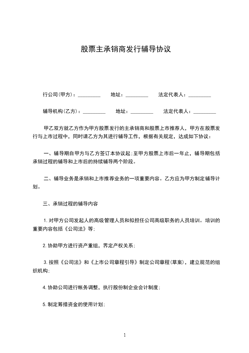 甲乙双方就乙方作为甲方股票发行的主承销商和股票上市推荐人,甲方在股票发行与上市过程中,同时请乙方为其进行辅导工作,根据有关规定,达成如下合同: