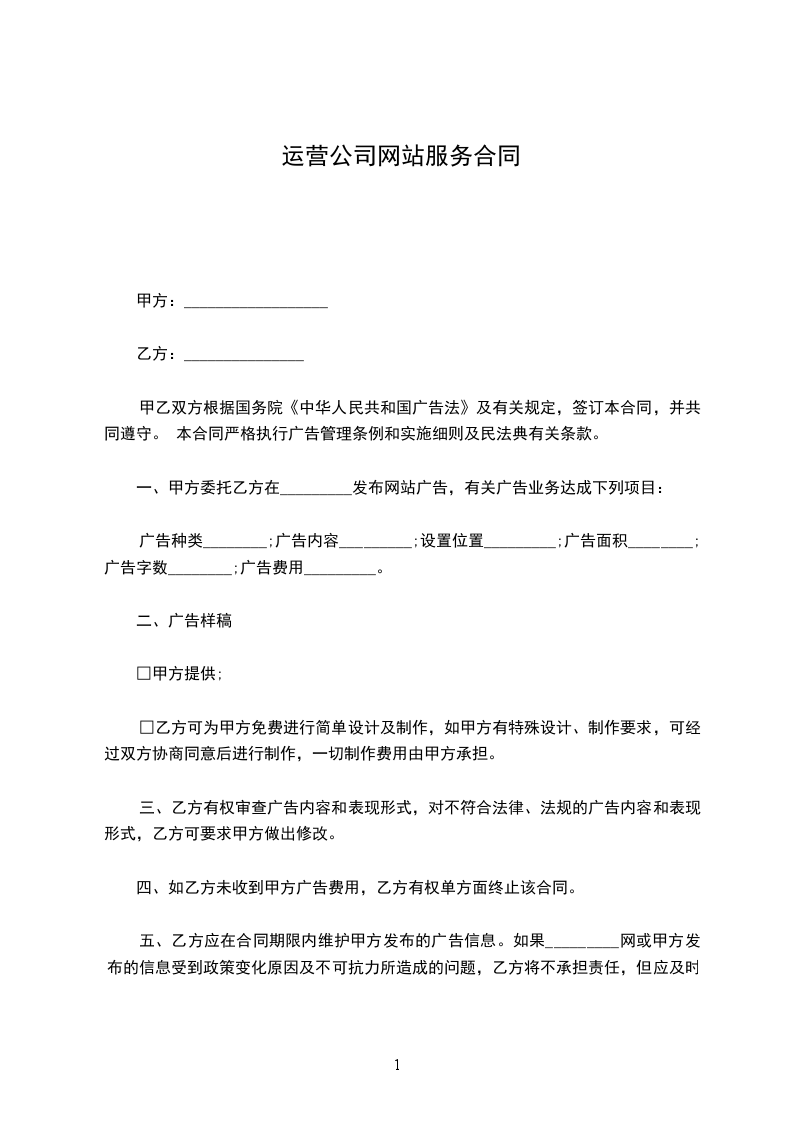 一、甲方委托乙方在_________发布网站广告,有关广告业务达成下列项目: