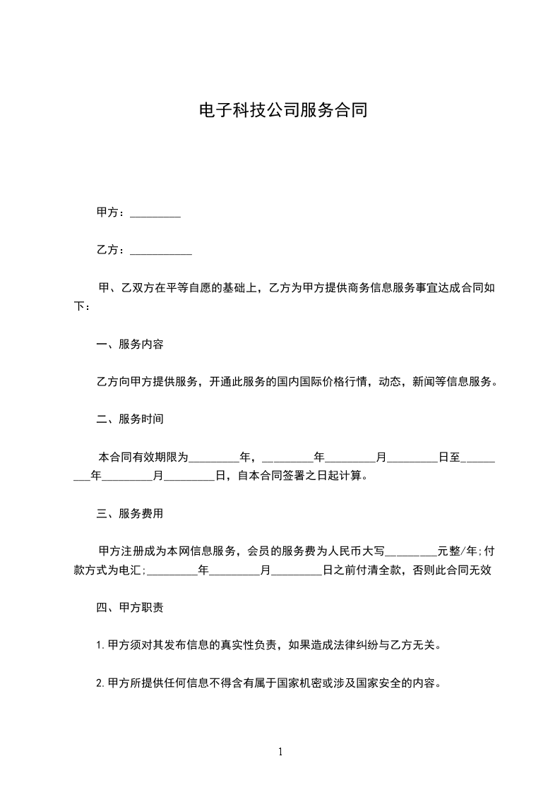 工商注册地:__________ 为充分利用先进电信技术,促进业务发展,经甲乙双方友好协商,达成协议如下: