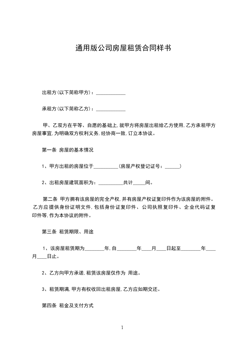第一条:甲方 (面积: ㎡)租赁给乙方作为 之用。