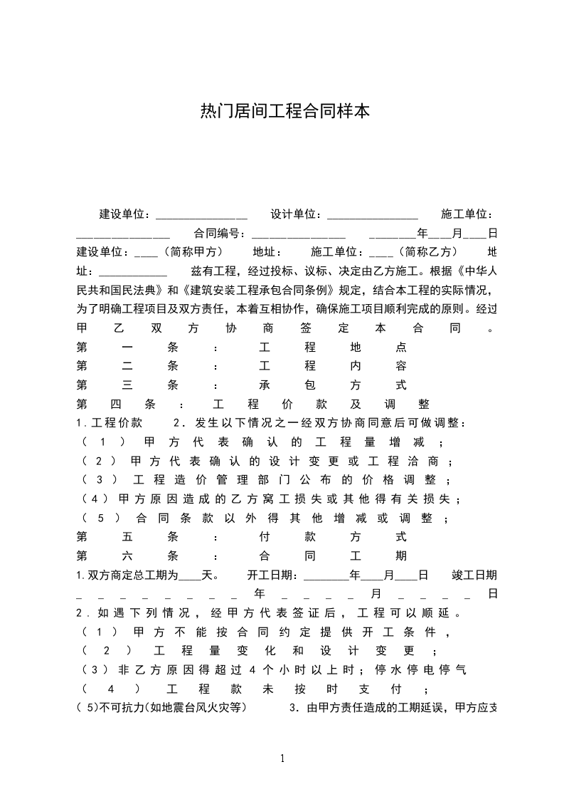 建设单位:________________ 设计单位:________________ 施工单位:________________ 合同编号:________________ ________年____月____日 建设单位:____(简称甲方) 地址: 施工单位:____(简称乙方) 地址:____________ 兹有工程,经过投标、议标、决定由乙方施工。根据《中华人民共和国民法典》和《建筑安装工程承包合同条例》规定,结合本工程的实际情况,为了明确工程项目及双方责任,本着互相协作,确保施工项目顺利完成的原则。经过甲乙双方协商签定本合同。