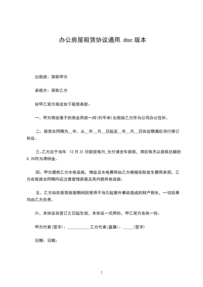 2.乙方逾期交付租金,除仍应补交欠租外,并按月租金的1%,以天数计算向甲方交付违约金。