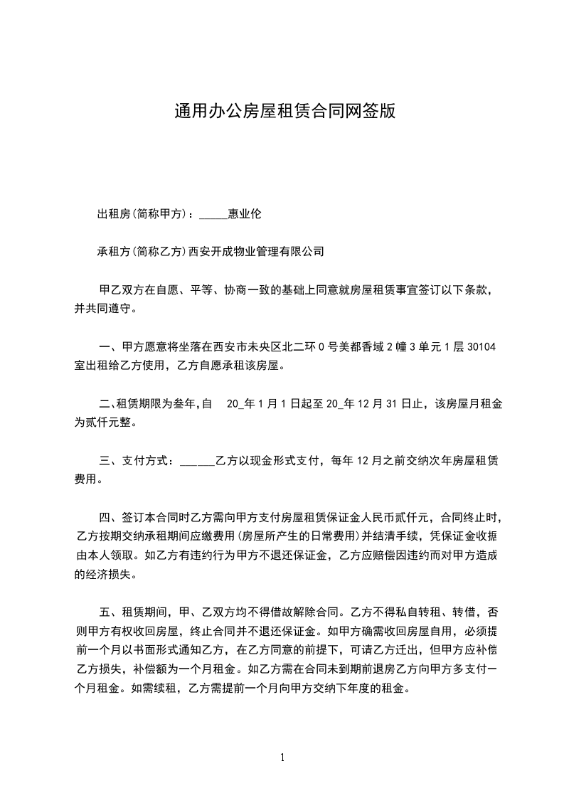 1.甲乙双方议定合同期内月租金1500,一次性付________年租金18000元。。