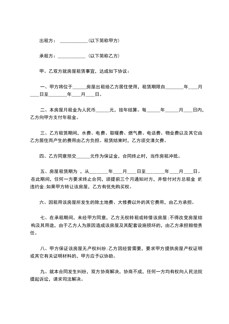 7. 合同期满后,如甲方仍继续出租房屋的,乙方拥有优先承租权。