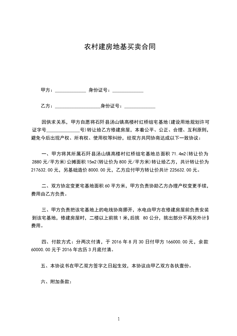 地基买卖合同范文篇三