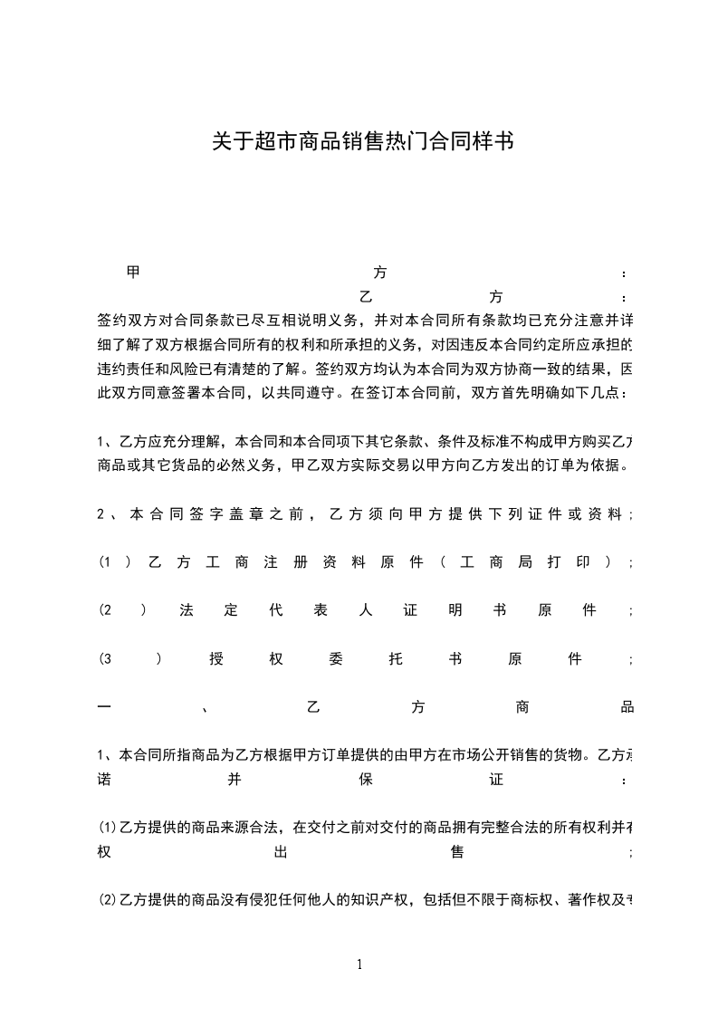 1、本合同所指商品为乙方根据甲方订单提供的由甲方在市场公开销售的货物。乙方承诺并保证: