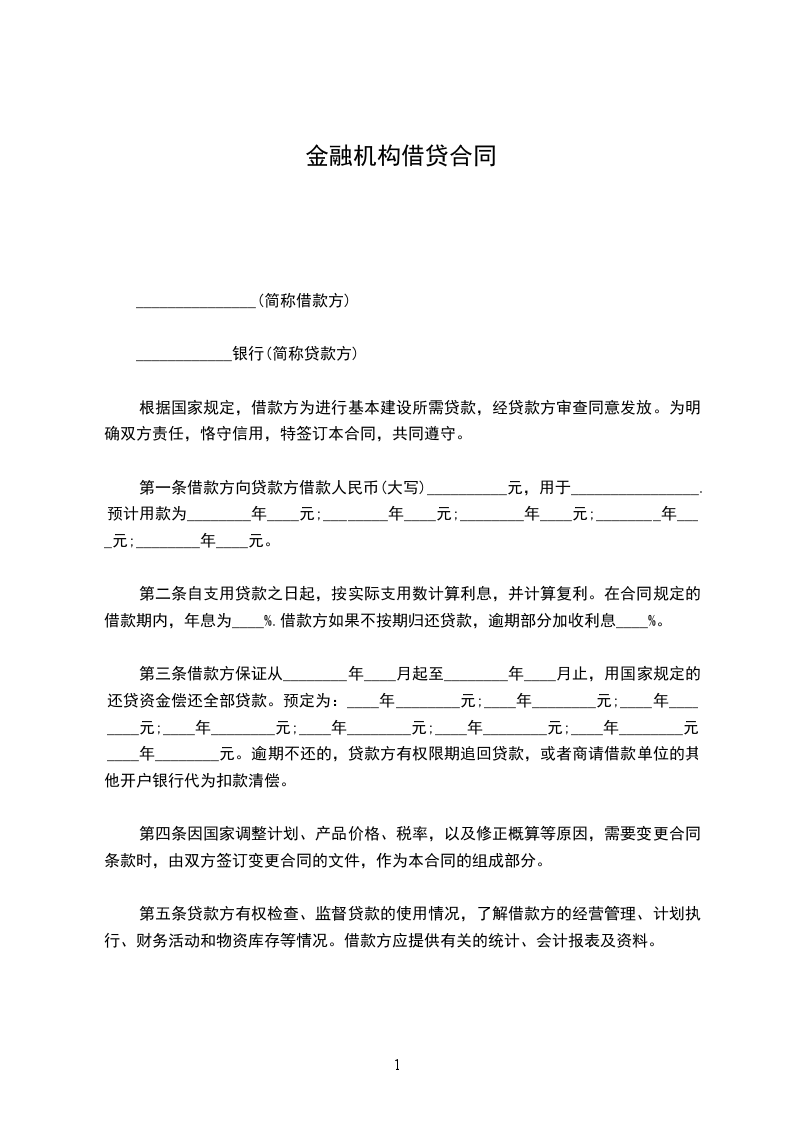 第一条借款方向贷款方借款人民币(大写)__________元,用于________________.预计用款为________年____元;________年____元;________年____元;________年____元;________年____元。