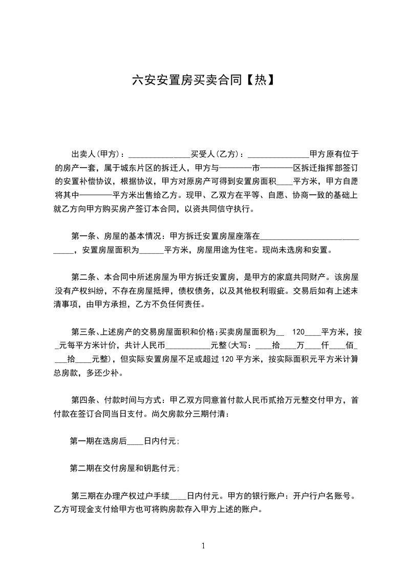 四、房屋交付 甲方应在交房当日(________年____月____日)将拆迁安置房屋相关的所有手续、余款、拆迁补偿款等一切和该出售房有关的文件及票据交付乙方(以各项文件及票据为证明)。甲方于房屋交付使用时将交易的房产及其钥匙全部交付给乙方。