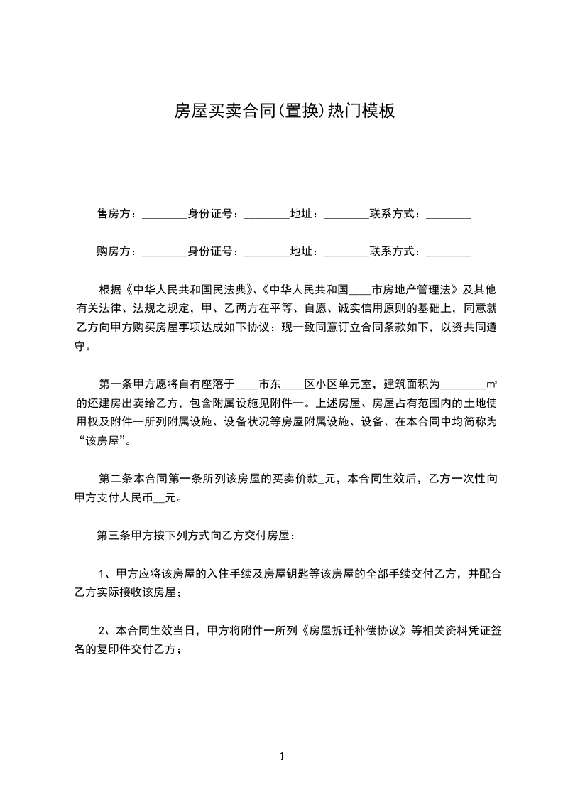 出卖人(甲方): 身份证号码: 买受人(乙方): 身份证号码: 根据《民法典》及其他有关法律、法规之规定,甲、乙双方在平等、自愿、协商一致的基础上,就乙方向甲方购买房产签订本合同,以资共同信守执行。