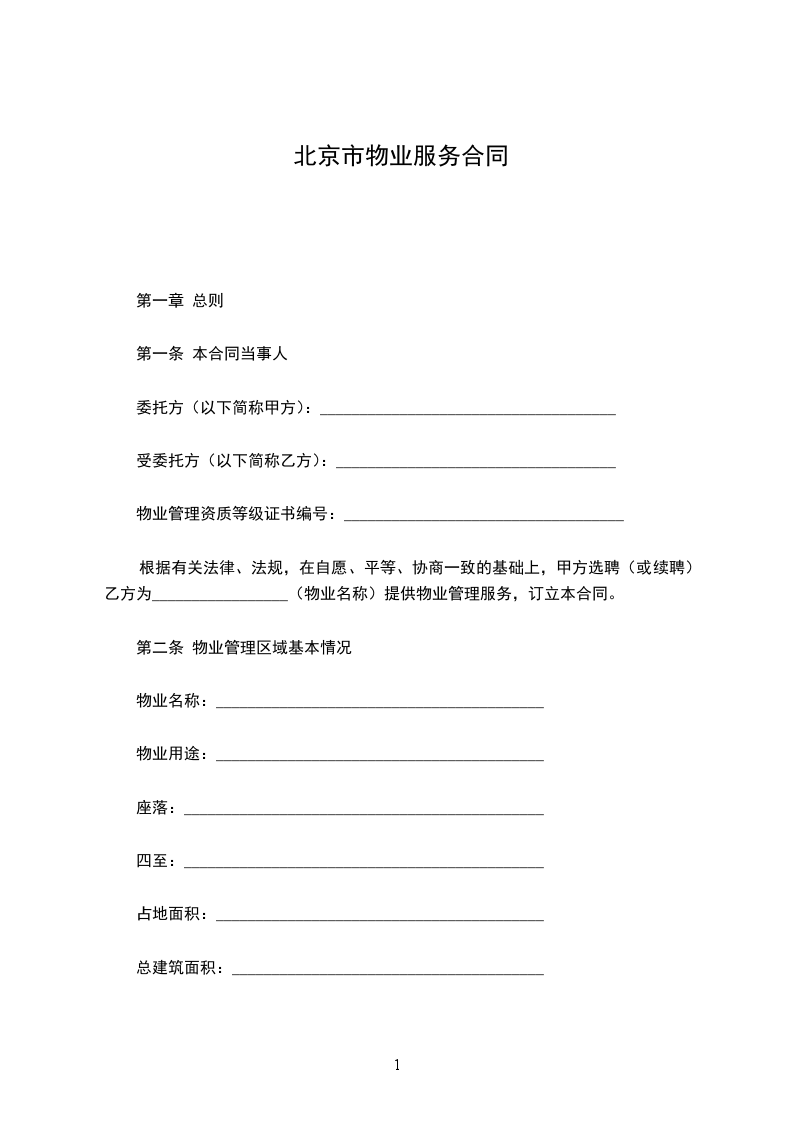 1.执行北京市国土资源和房屋管理局发布的《北京市住宅物业管理服务标准》(京国土房管物字[2003]950号)规定的标准一,即普通商品住宅物业管理服务标准;_________________。