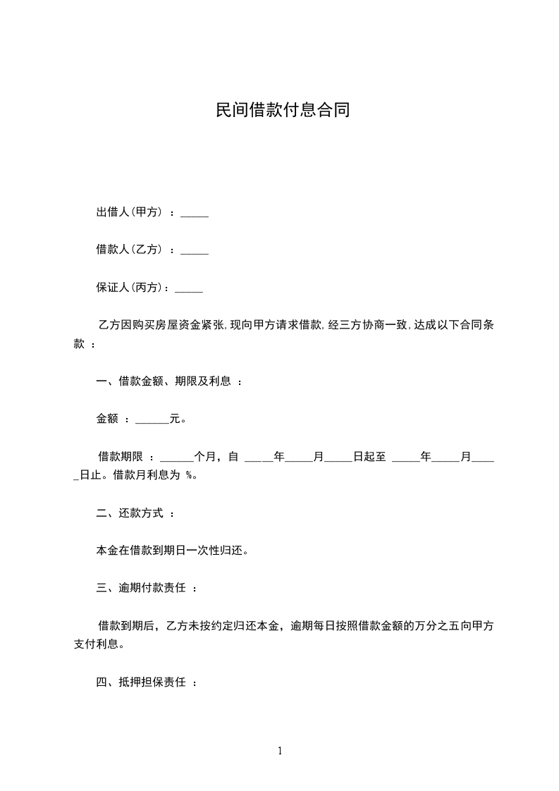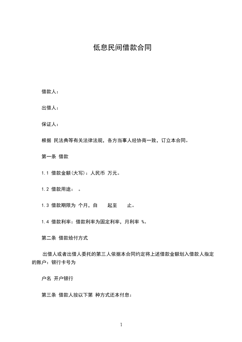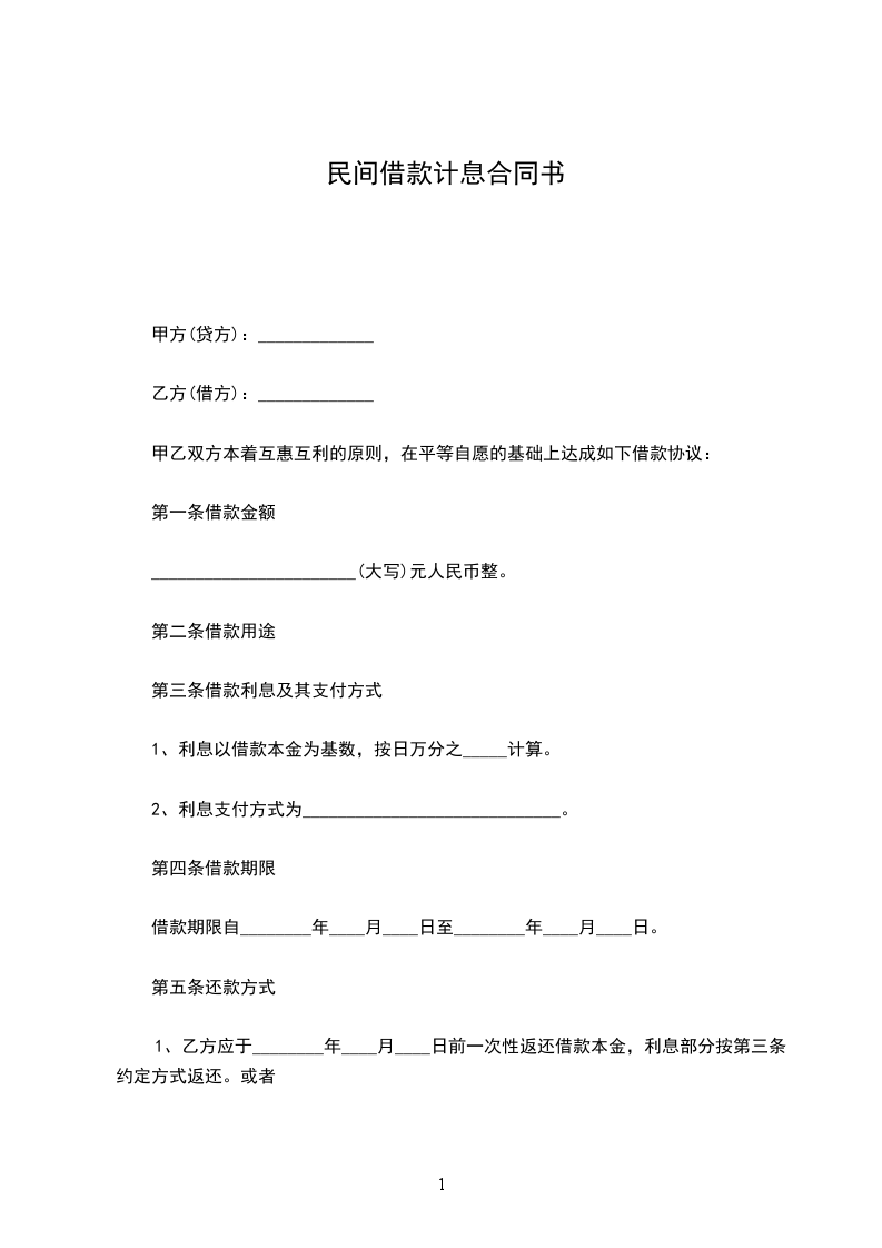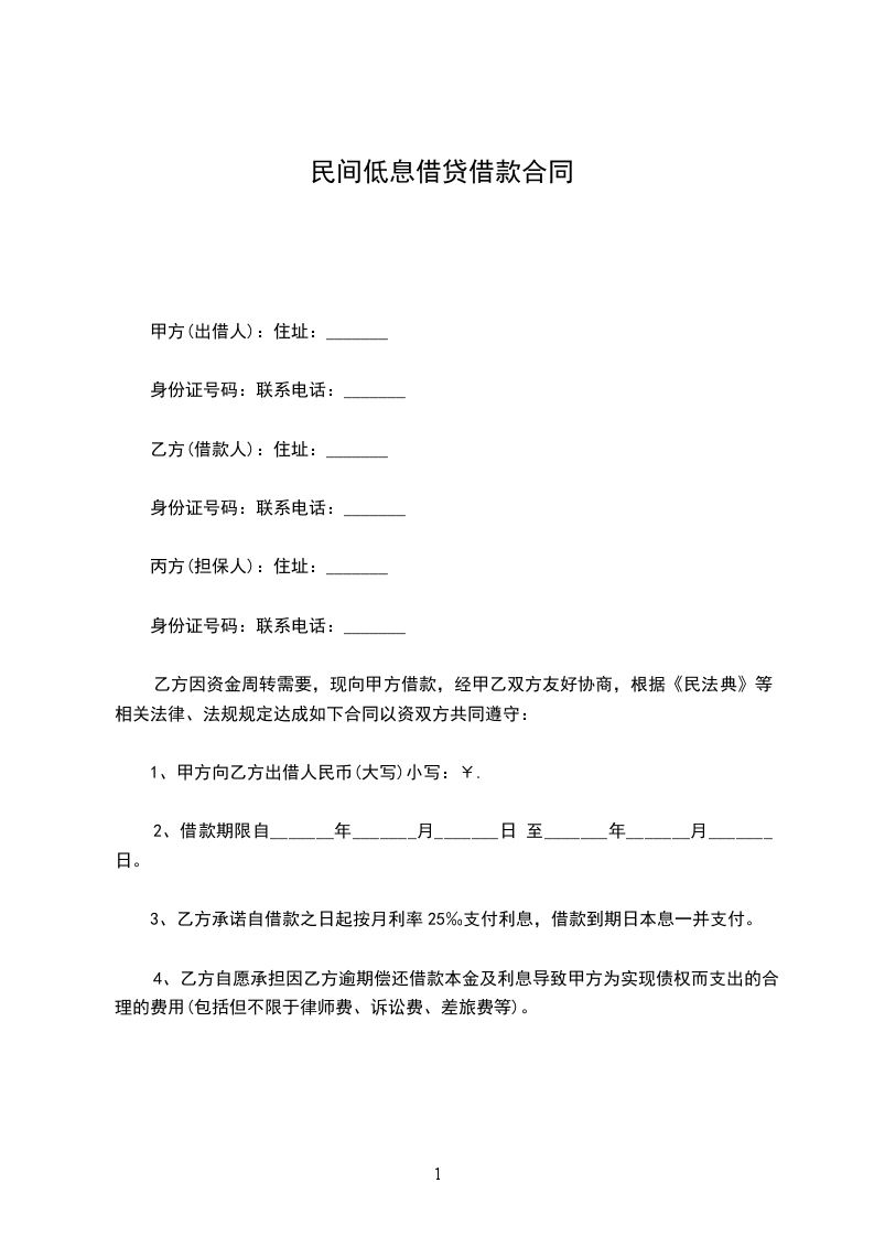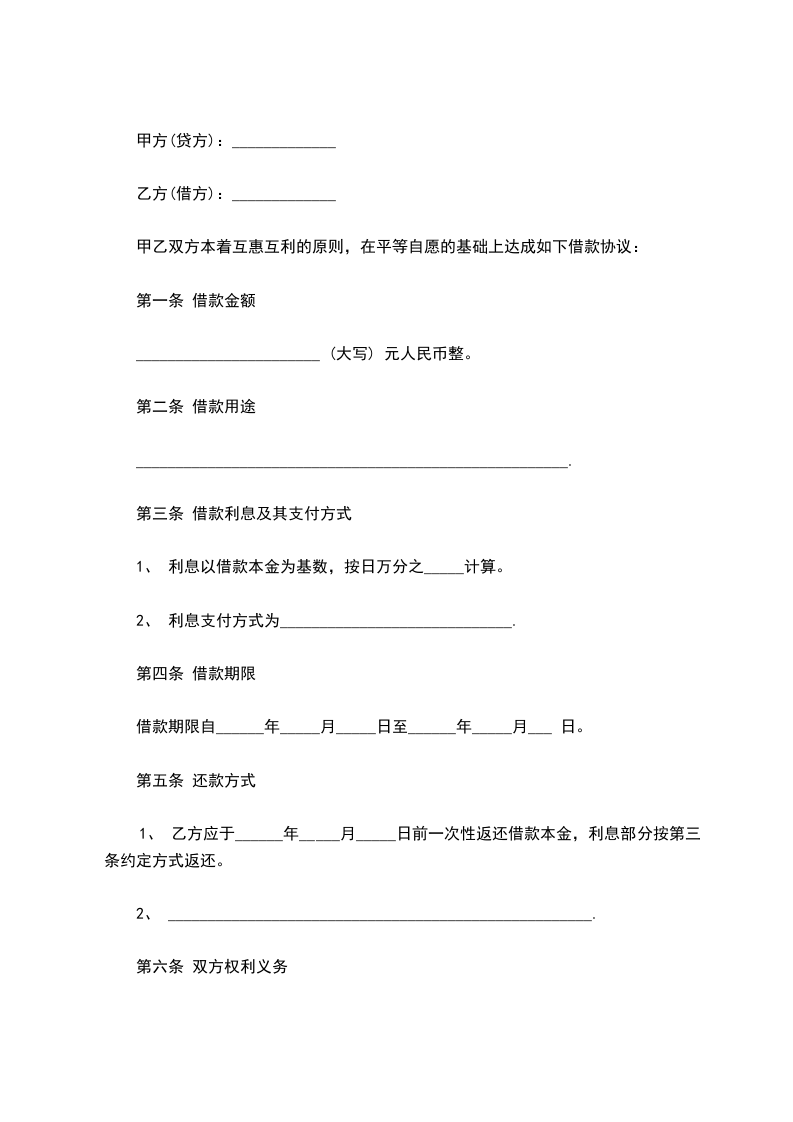 1、甲方应于______年_____月_____日前一次性提供给乙方合同约定的借款数额。