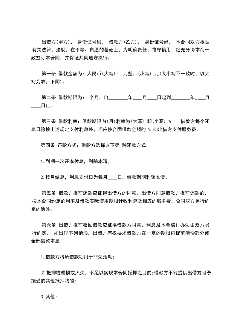 九、本合同未做约定的,按照《民法典》的有关规定执行。 本合同一式2份,双方各执1份。 贷款人:_____________