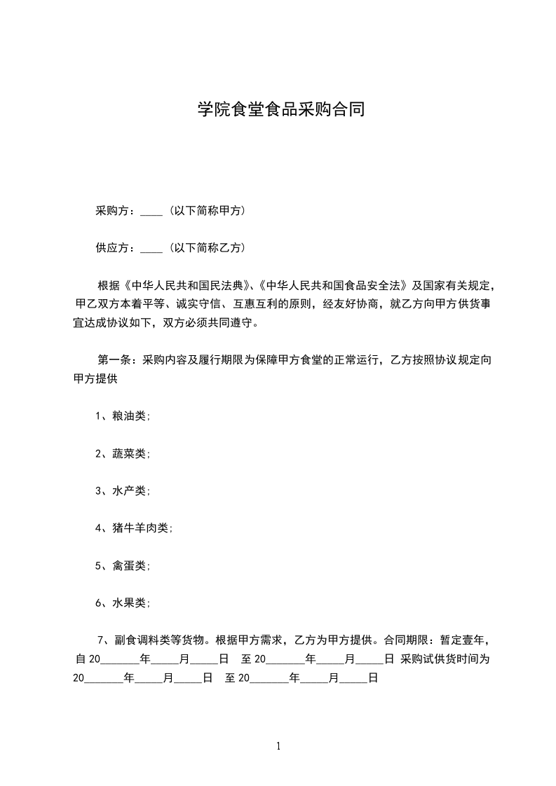 第一条:采购内容及履行期限为保障甲方食堂的正常运行,乙方按照协议规定向甲方提供