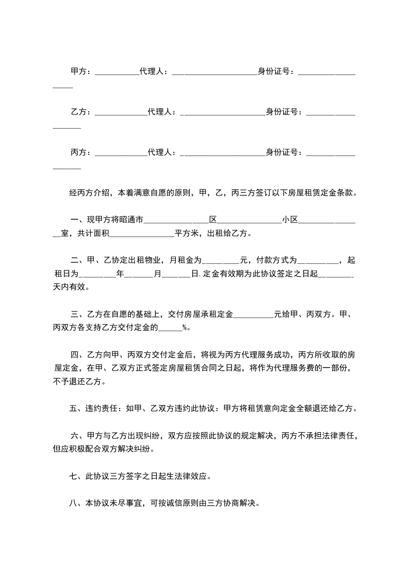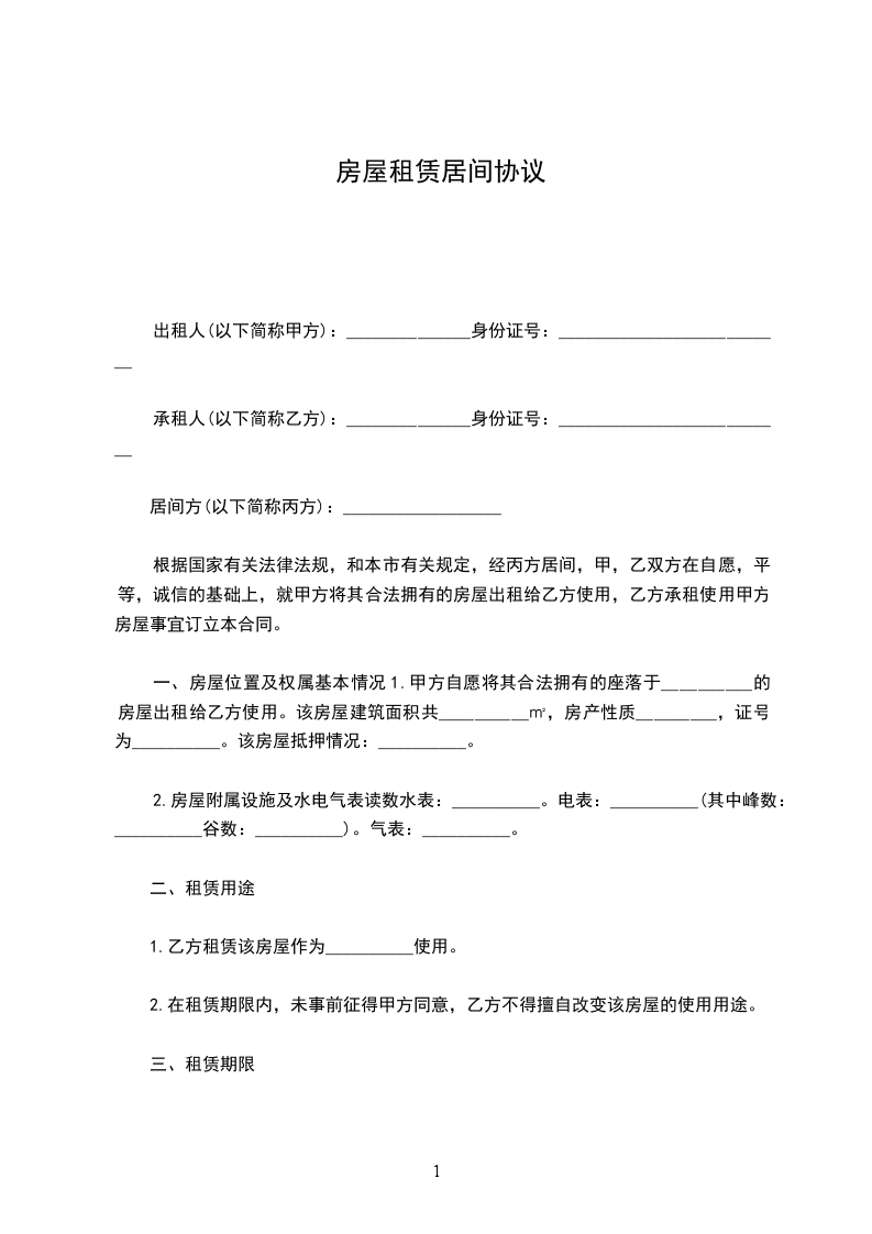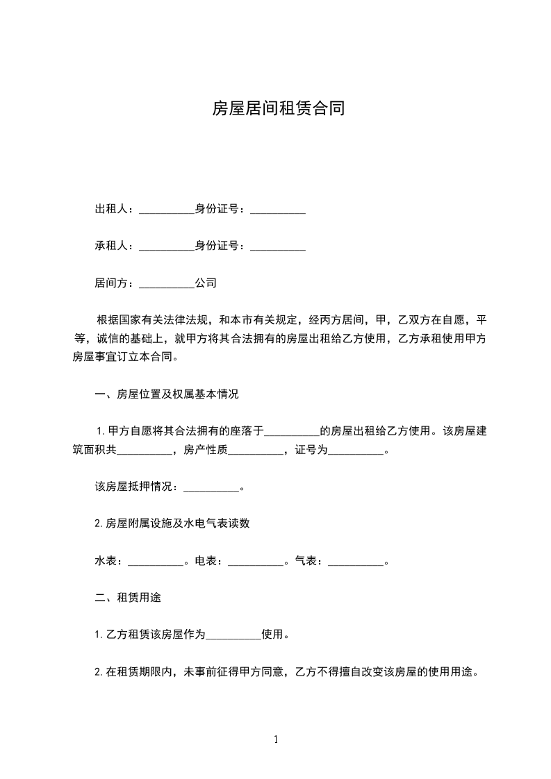 出租方: (以下简称甲方) 承租方: (以下简称乙方) 根据《中华人民共和国民法典》及有关规定,为明确甲方与乙方的权利义务关系, 经双方协商,签订本合同。