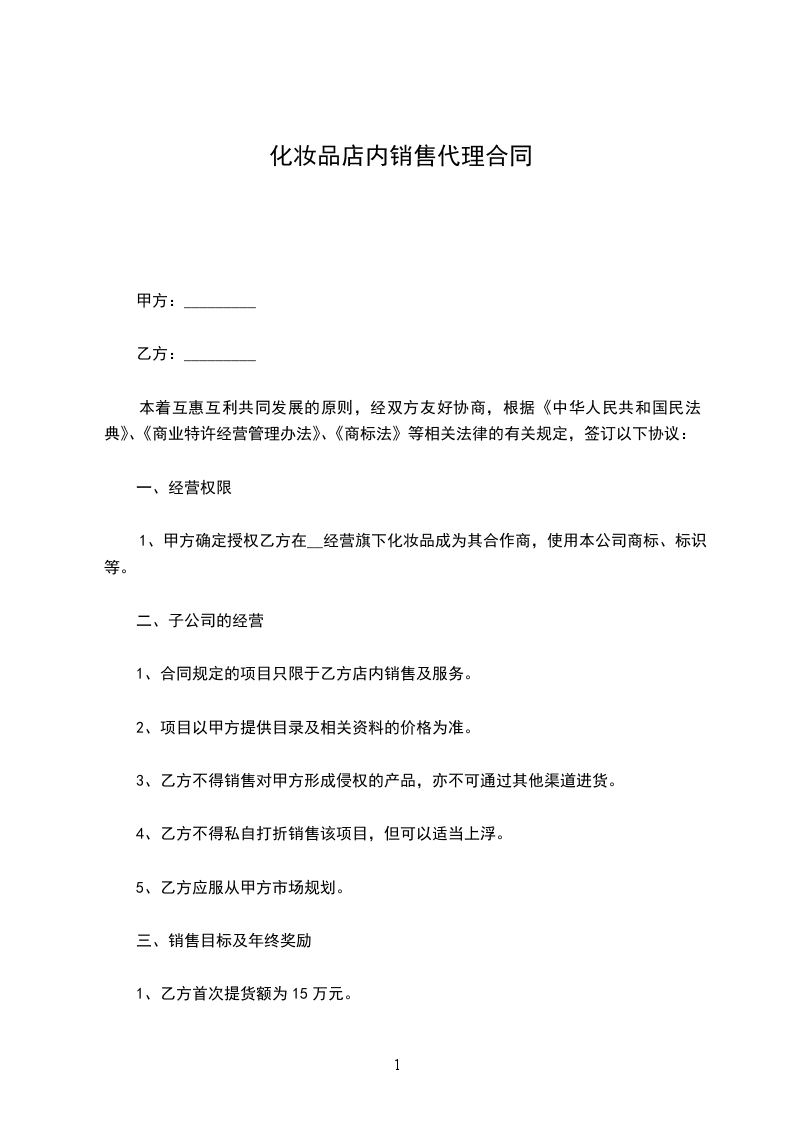 1、甲方确定授权乙方在__经营旗下化妆品成为其合作商,使用本公司商标、标识等。