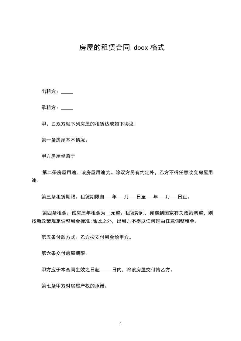 第二条:房屋租赁期限:________年,自________年月____日起至20________年____月____日止。