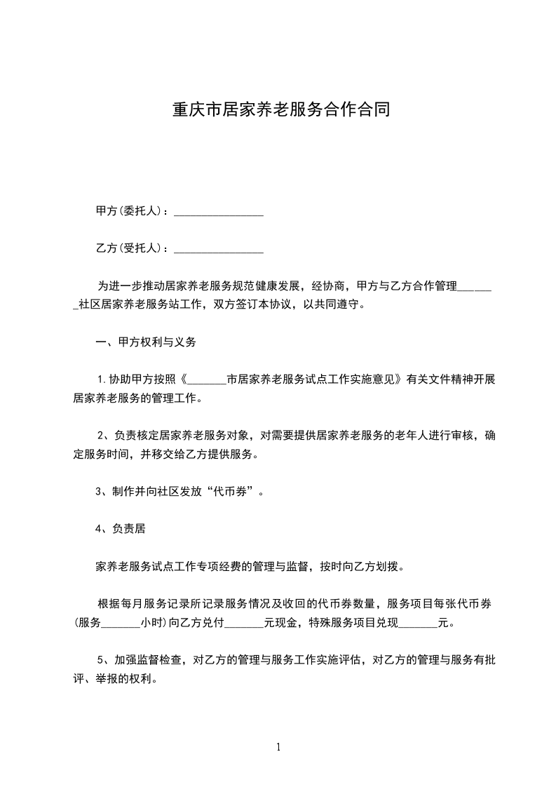 1.协助甲方按照《_______市居家养老服务试点工作实施意见》有关文件精神开展居家养老服务的管理工作。