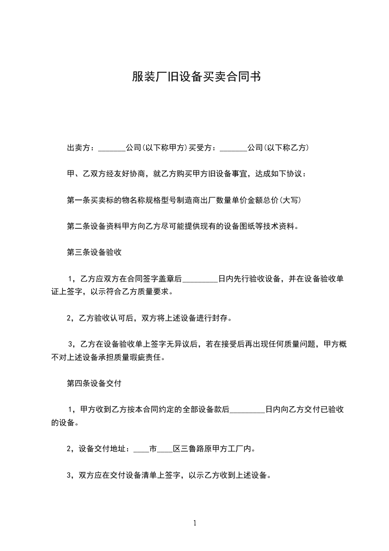四、本合同有效期间为_______年,自_______年_______月_______日至_______年_______月_______日。合同期间甲乙任何一方不得无故终止合同。甲方无故终止合同,除应向乙方付清已购设备的所有货款外,还应支付乙方_______万元的违约金;乙方无故终止供货,甲方有权扣留乙方之部份货款作为求偿业务之损失。