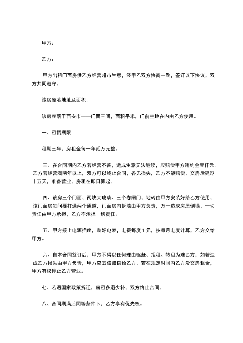 ③、乙方按照商城整体的招商政策、价格对外招商;在该商铺没有出租出去期间,乙方无须支付甲方租金。