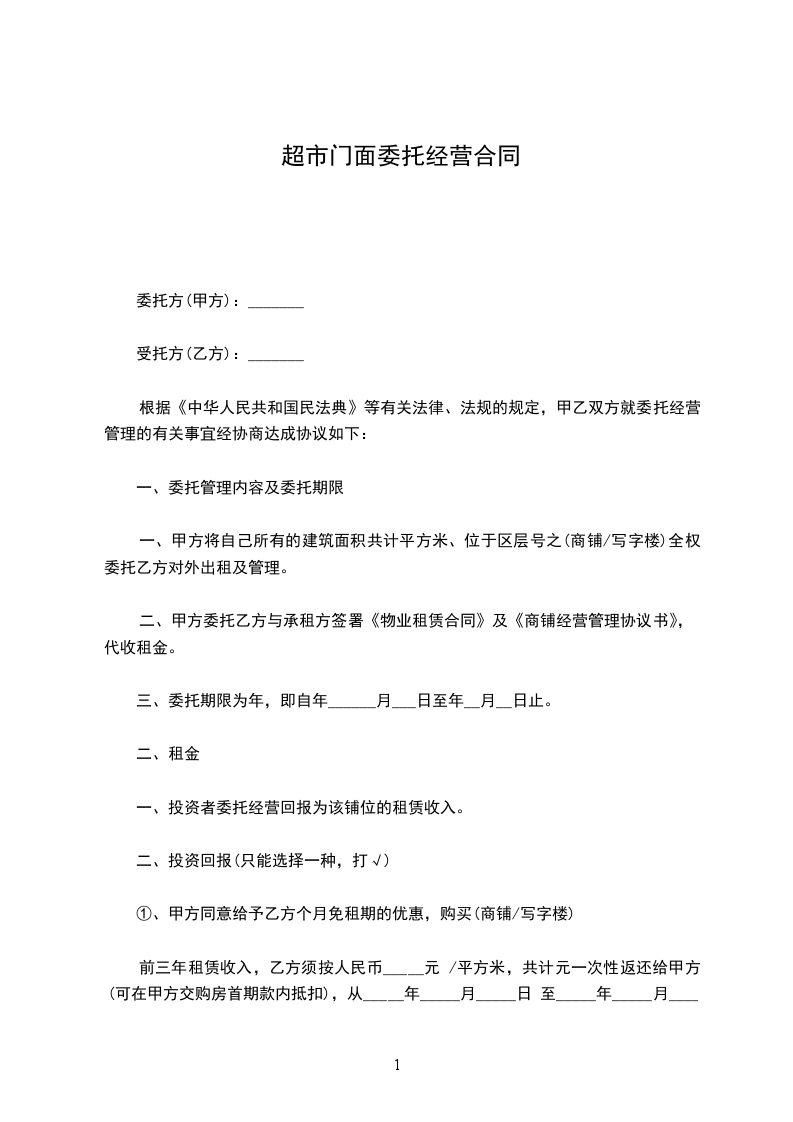 根据《中华人民共和国民法典》等有关法律、法规的规定,甲乙双方就委托经营管理的有关事宜经协商达成协议如下: