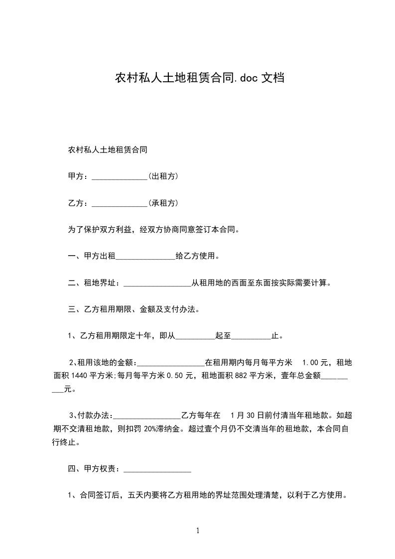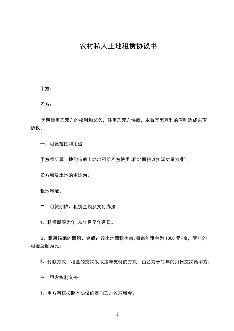 四、租赁金额:每亩地_____元,以后若有调整按全镇统一租赁价格标准执行:签订合同时交清第一年租金,以后租金于每年的 ___月___日之前交清。