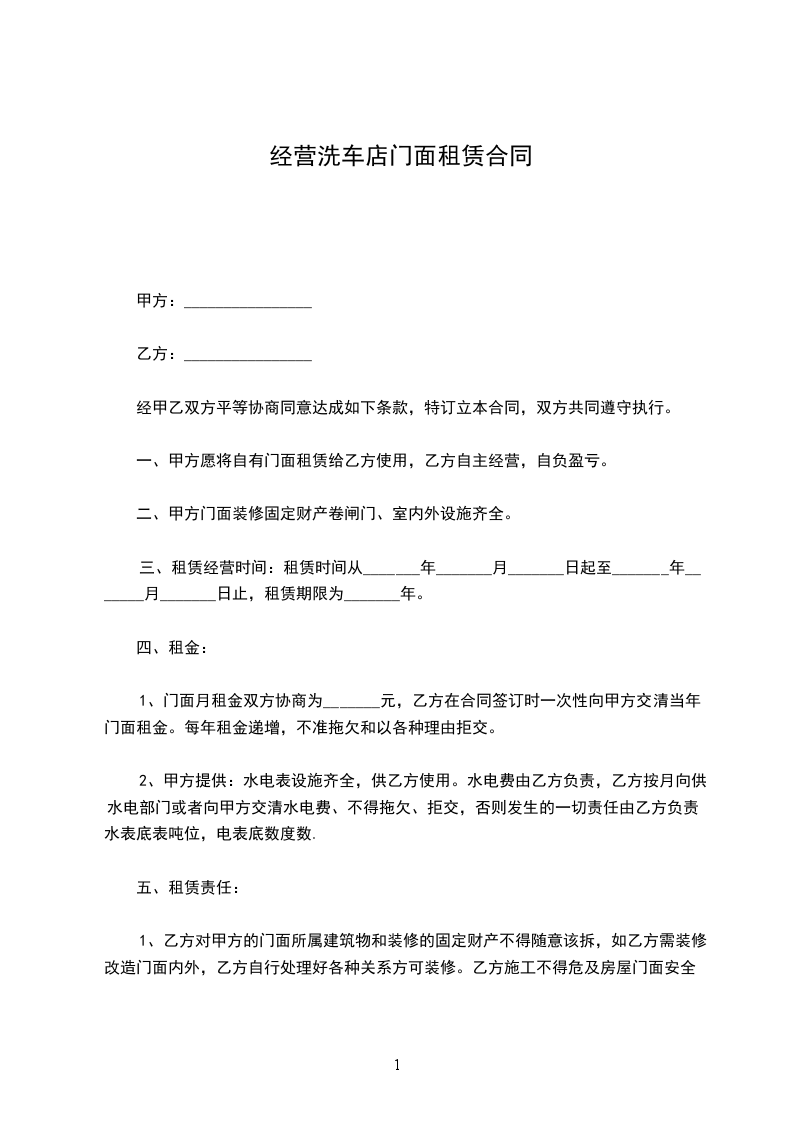 一、甲方将位于出租给乙方作 使用。乙方在租赁期间应遵守国家法律法规,守法经营。若因违规、违法受罚或被追究法律责任,甲方不负连带责任,并有权收加店面,终止合同。