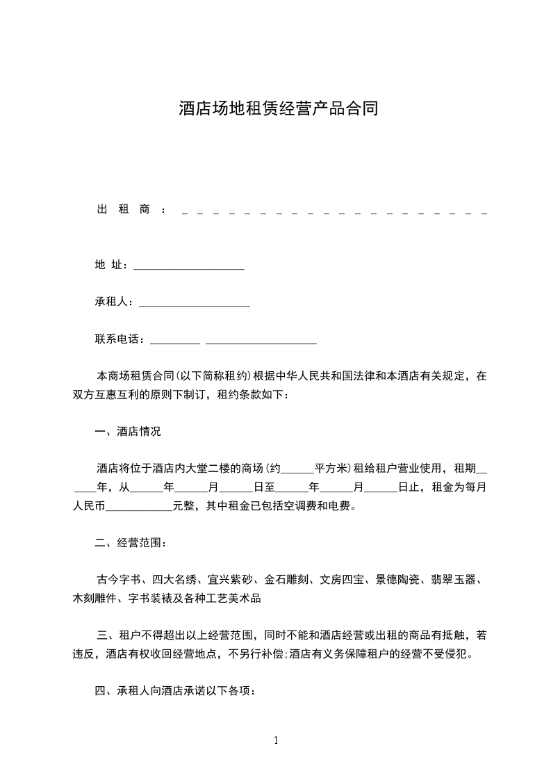9、乙方原则上不允许经营与酒店相同的商品,经批准经营的部分商品,售价不得低于酒店营业场点的定价。租赁期间乙方保证自行经营,不得转让。