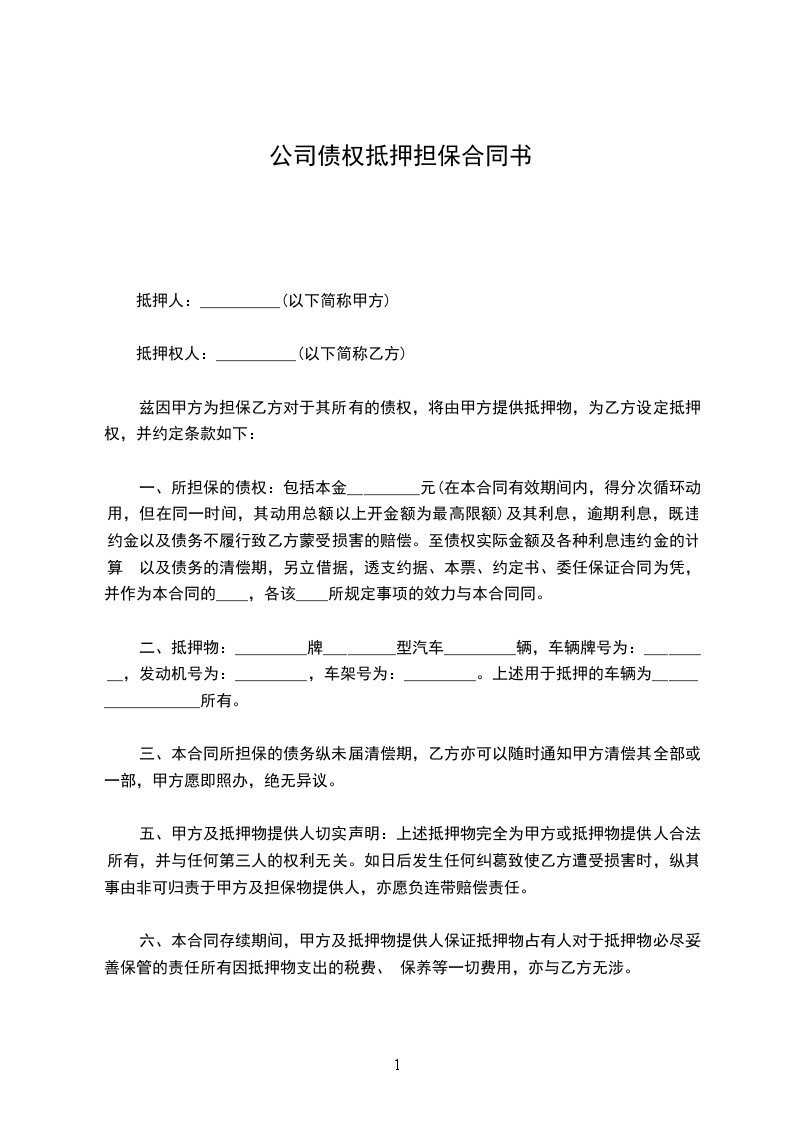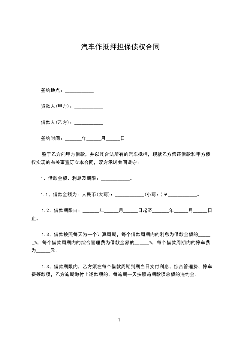 二、抵押物:_________牌_________型汽车_________辆,车辆牌号为:_________,发动机号为:_________,车架号为:_________。上述用于抵押的车辆为__________________所有。
