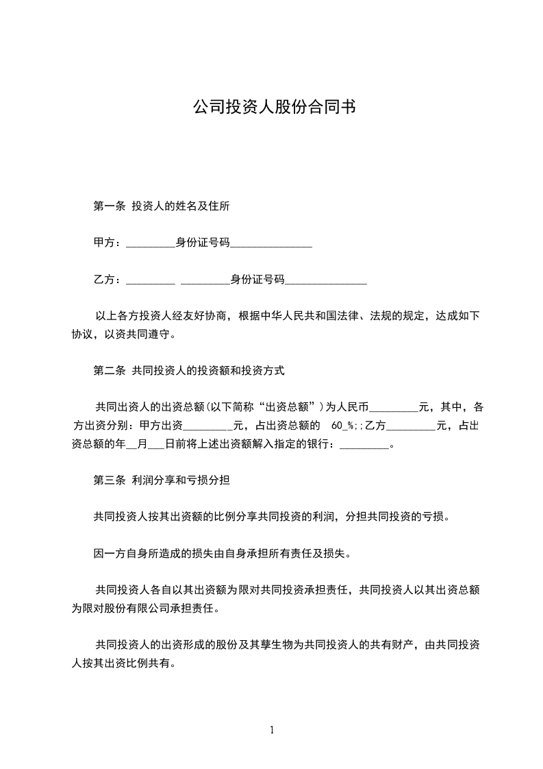 以上各方投资人经友好协商,根据中华人民共和国法律、法规的规定,达成如下协议,以资共同遵守。