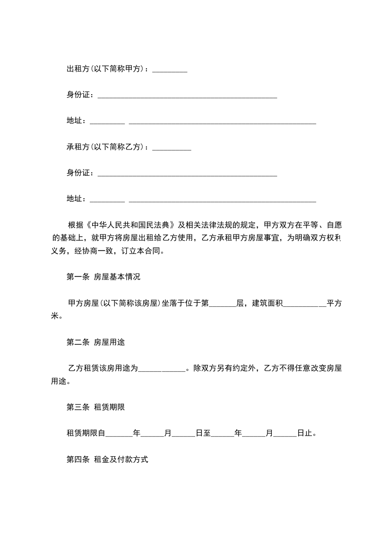 根据《中华人民共和国民法典》及相关法律法规的规定,甲方双方在平等、自愿的基础上,就甲方将房屋出租给乙方使用,乙方承租甲方房屋事宜,为明确双方权利义务,经协商一致,订立本合同。