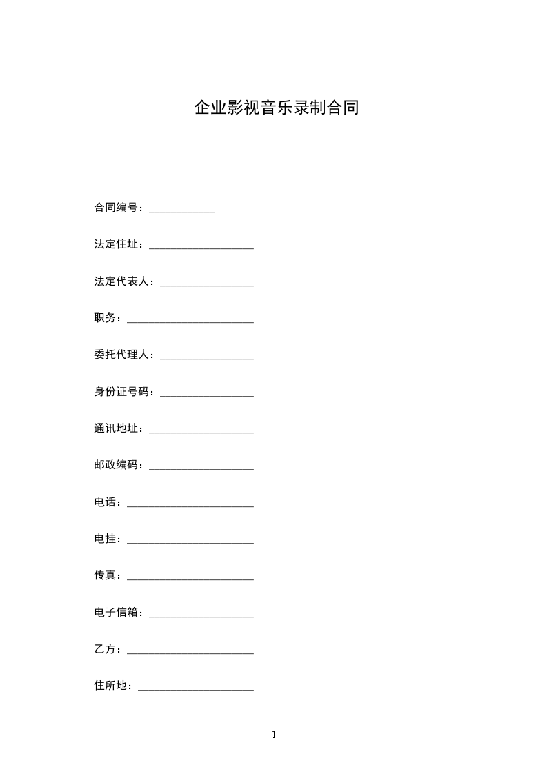 1.甲方是依法注册成立并取得合法从事电影(电视剧)制作资格的法人单位,其需要对计划/正在摄制的电影(电视剧)《_________》(下称电影(电视剧))中的相关音乐作品进行录制或重新录制;