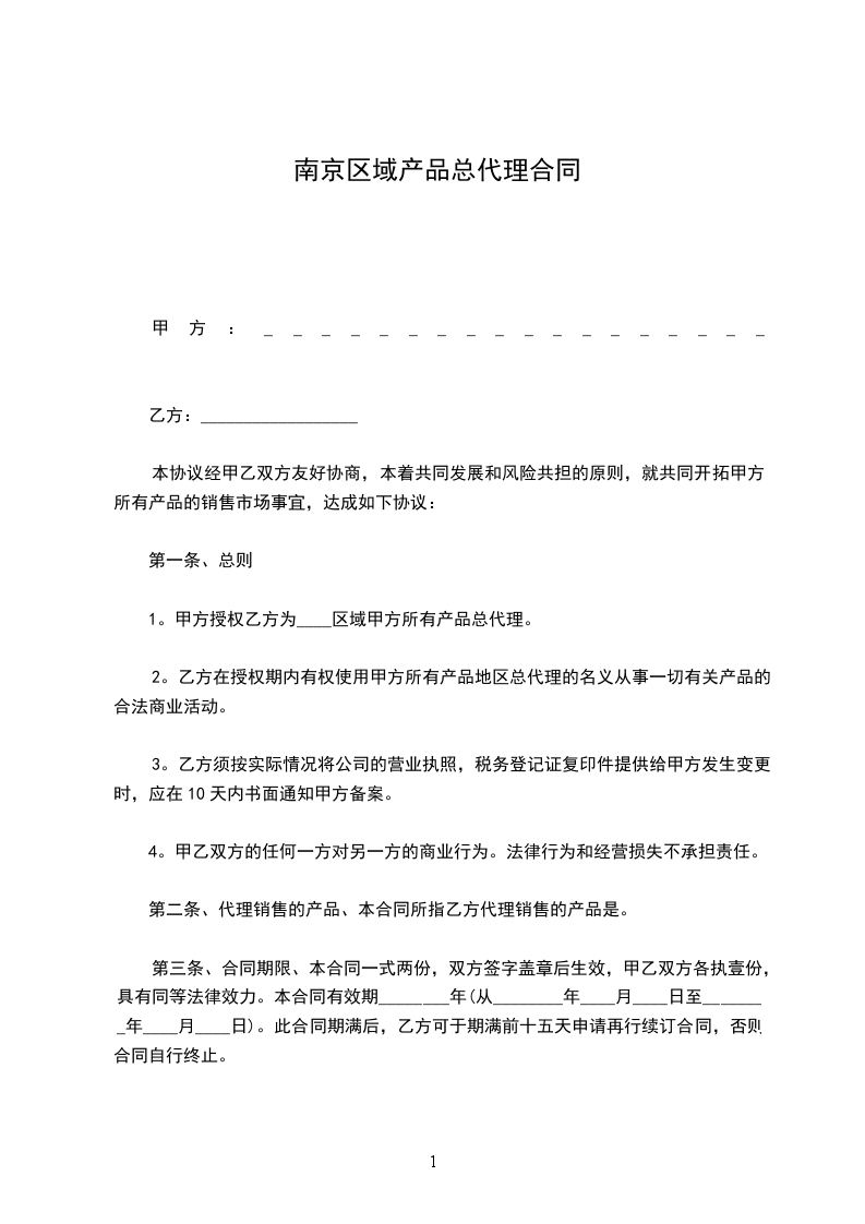 1。甲方授权乙方为____区域甲方所有产品总代理。