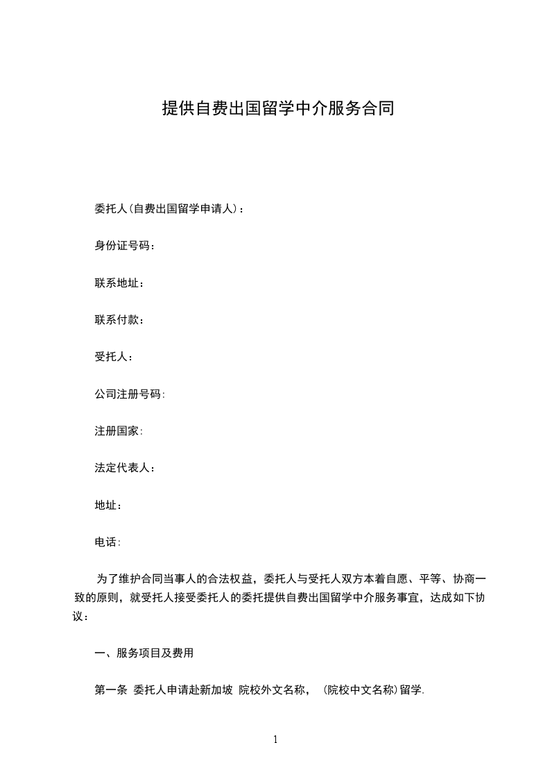 为了维护合同当事人的合法权益,委托人与受托人双方本着自愿、平等、协商一致的原则,就受托人接受委托人的委托提供自费出国留学中介服务事宜,达成如下协议: