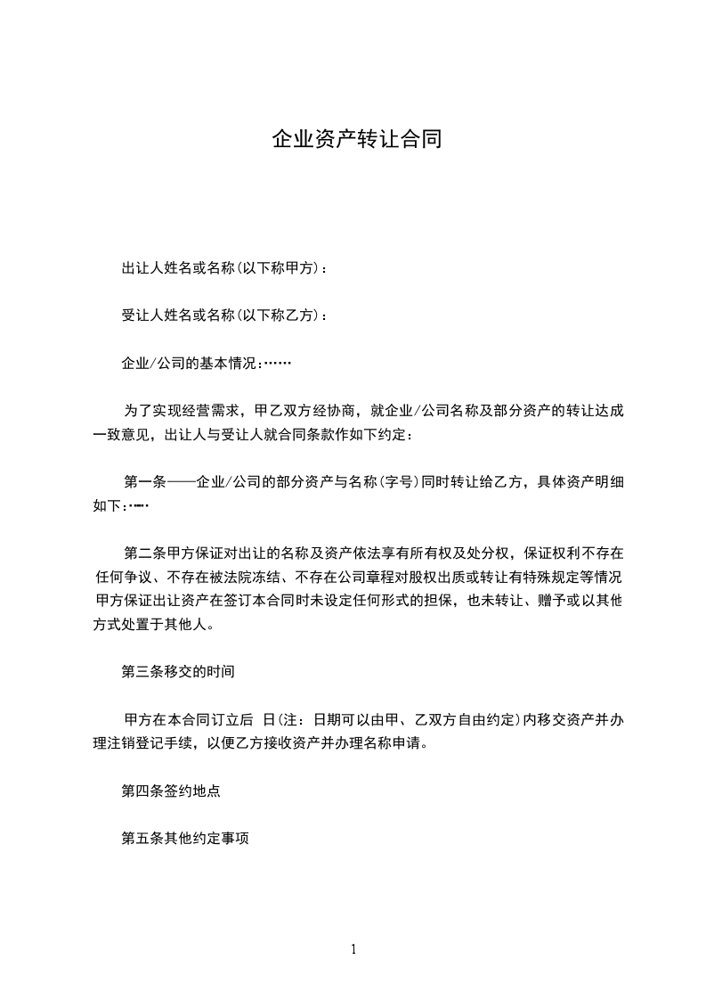 第一条 转让资产的范围