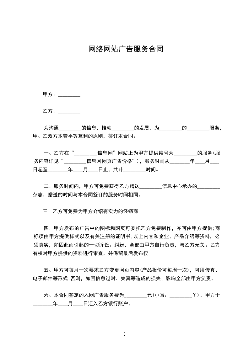 甲乙双方根据《中华人民共和国广告法》及有关规定,双方在平等自愿的基础上,就乙方为甲方提供网络广告服务事宜达成合同如下:
