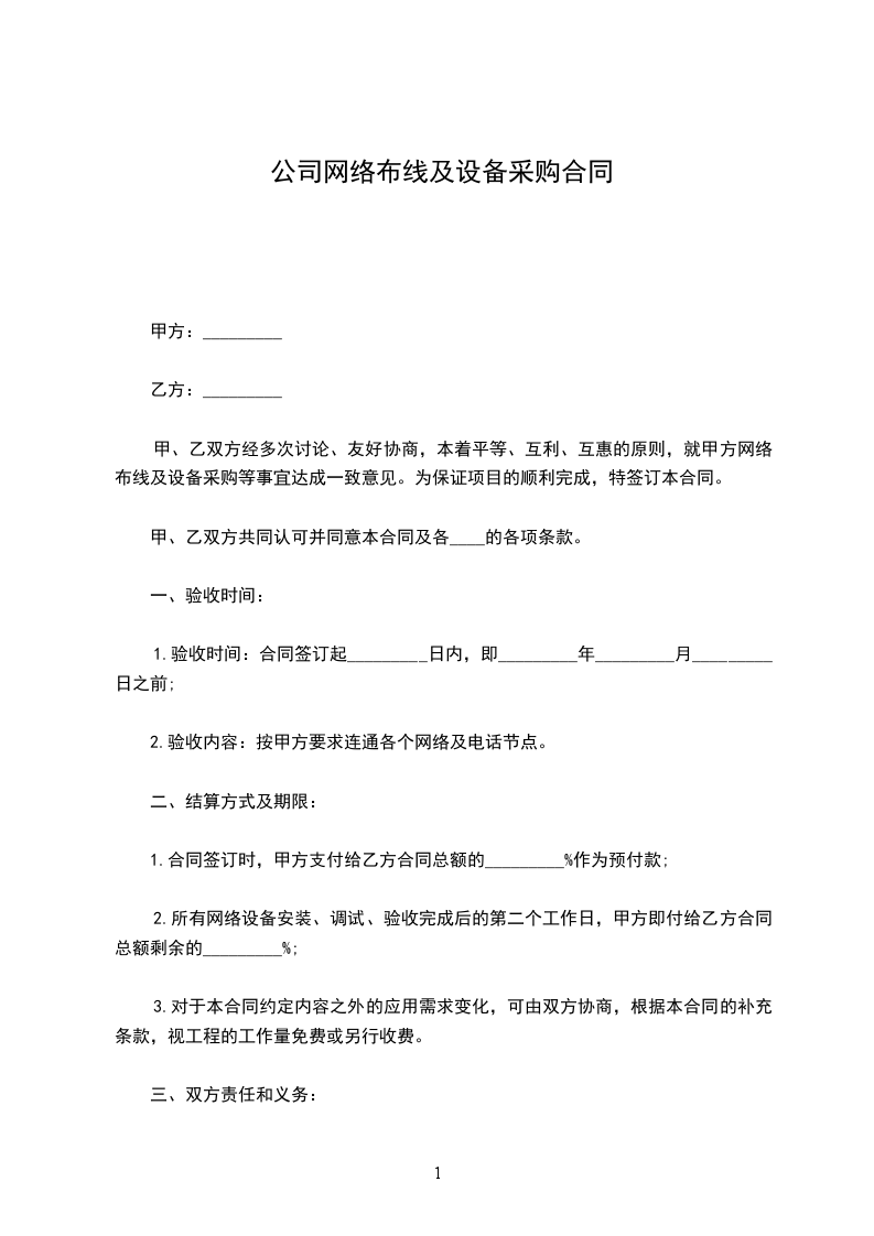 甲、乙双方经多次讨论、友好协商,本着平等、互利、互惠的原则,就甲方网络布线及设备采购等事宜达成一致意见。为保证项目的顺利完成,特签订本合同。
