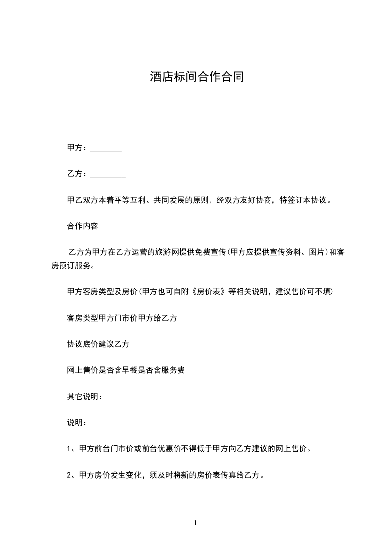 甲方:__________商务酒店有限公司(以下简称甲方)