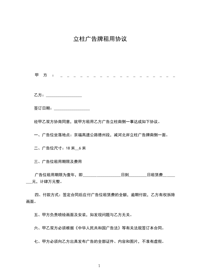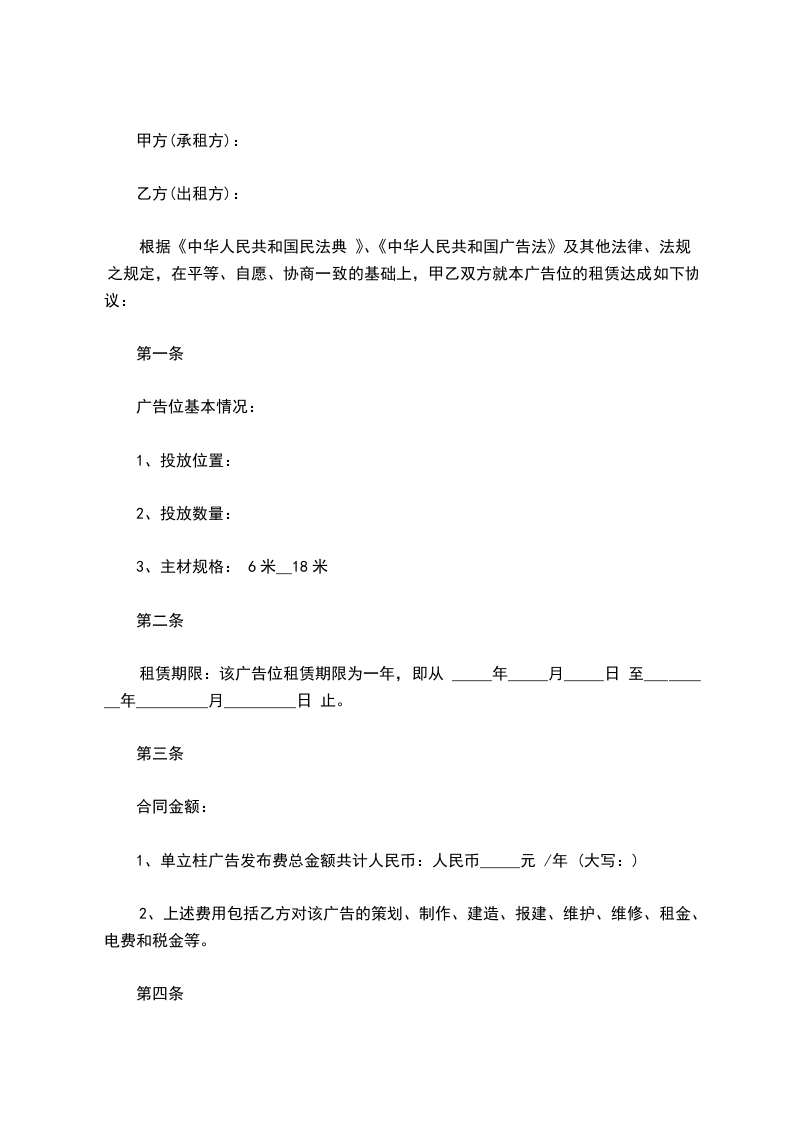 关规定,就广告牌租赁发布广告事项,在平等、公平、互惠的原则下,双方达成一致,内容如下: