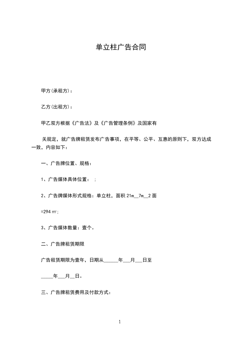 2、广告牌媒体形式规格:单立柱,面积21m__7m__2面
