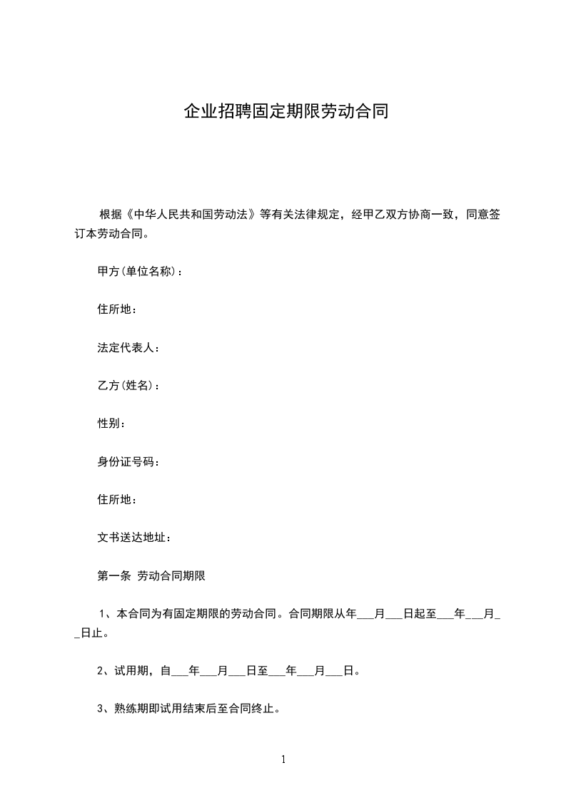 1、本合同为有固定期限的劳动合同。合同期限从年___月___日起至___年___月__日止。