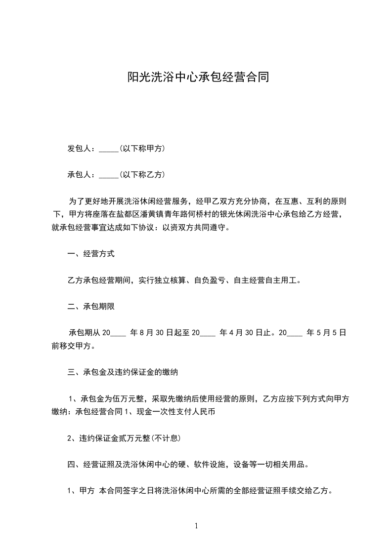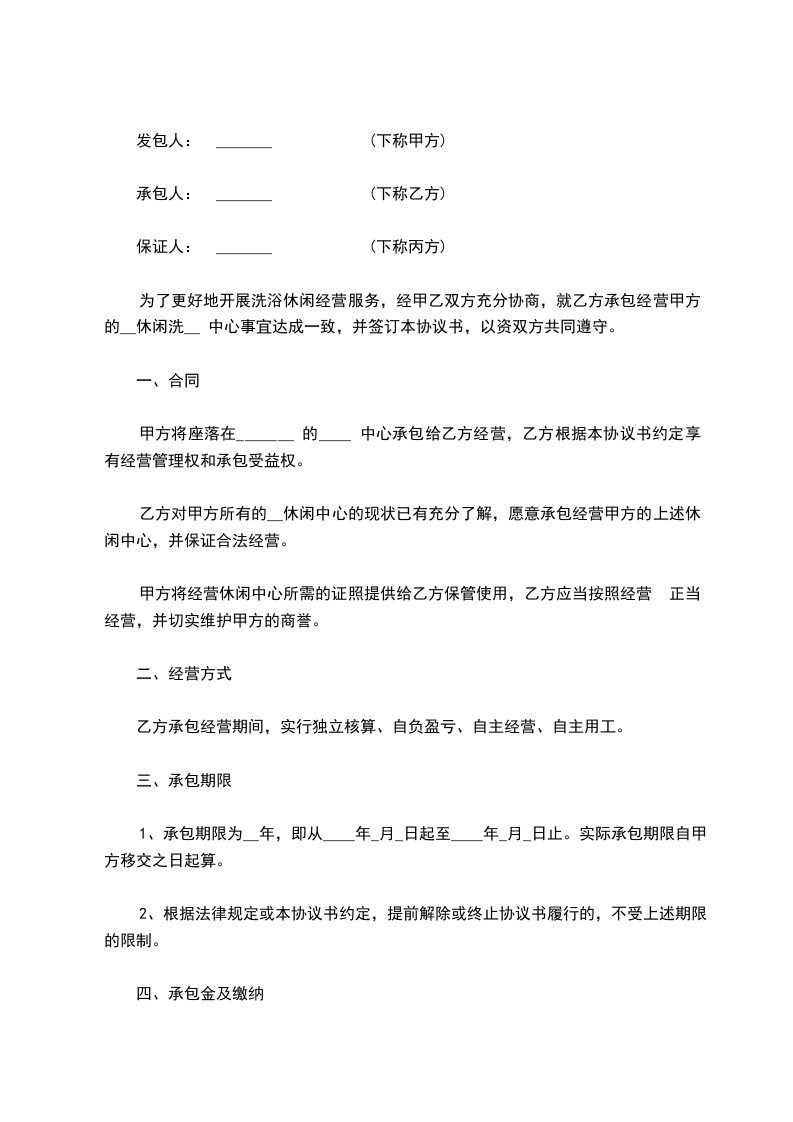 甲乙双方就___洗涤服务中心承包经营事宜,在友好、平等、自愿、协商一致的基础上签订本合同,甲乙双方需共同遵守:
