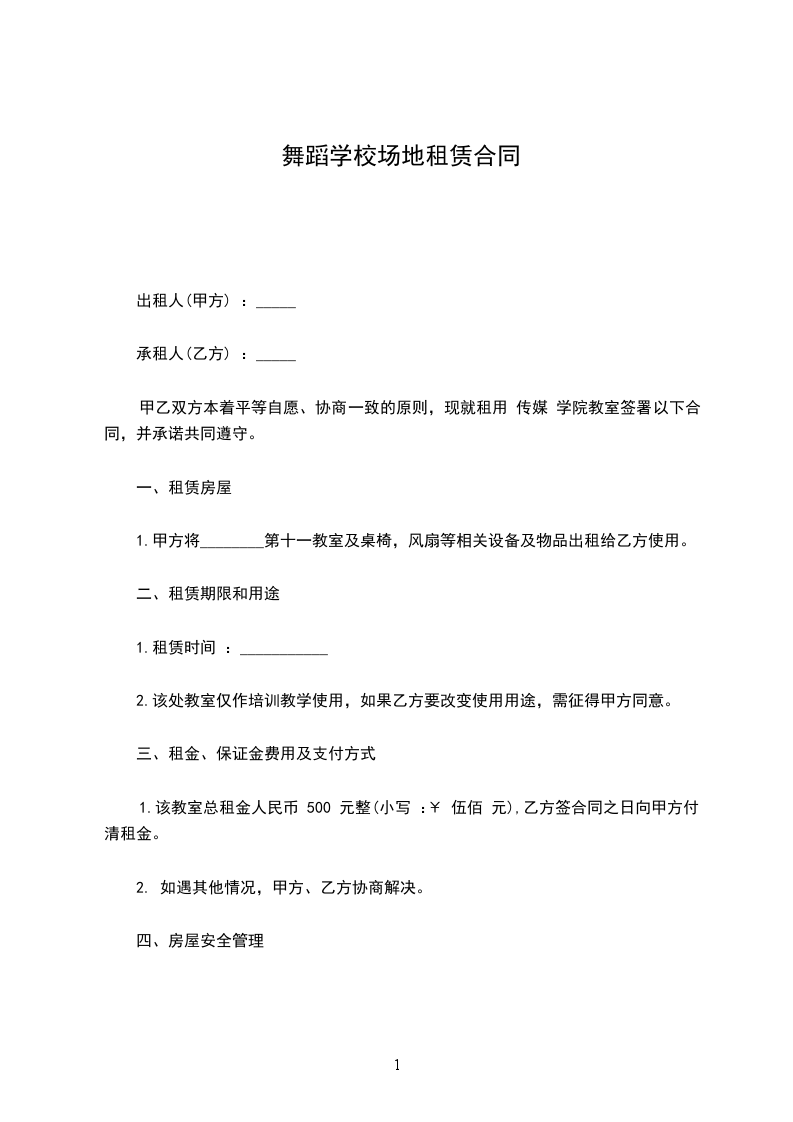 租期共_________年,即自_________年_________月_________日起至_________年_________月_________日止(使用时间为每周一至周五的白天上课时间,不含周六、日及寒暑假时间)