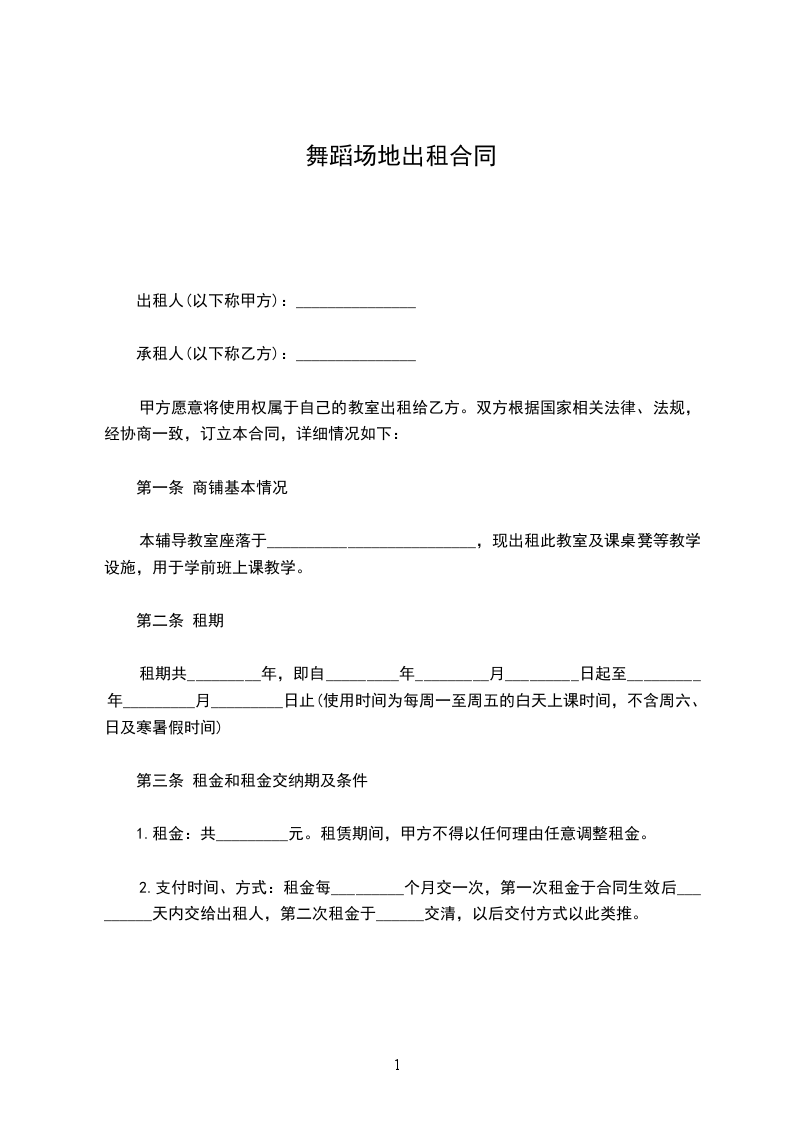 1.租金:共_________元。租赁期间,甲方不得以任何理由任意调整租金。