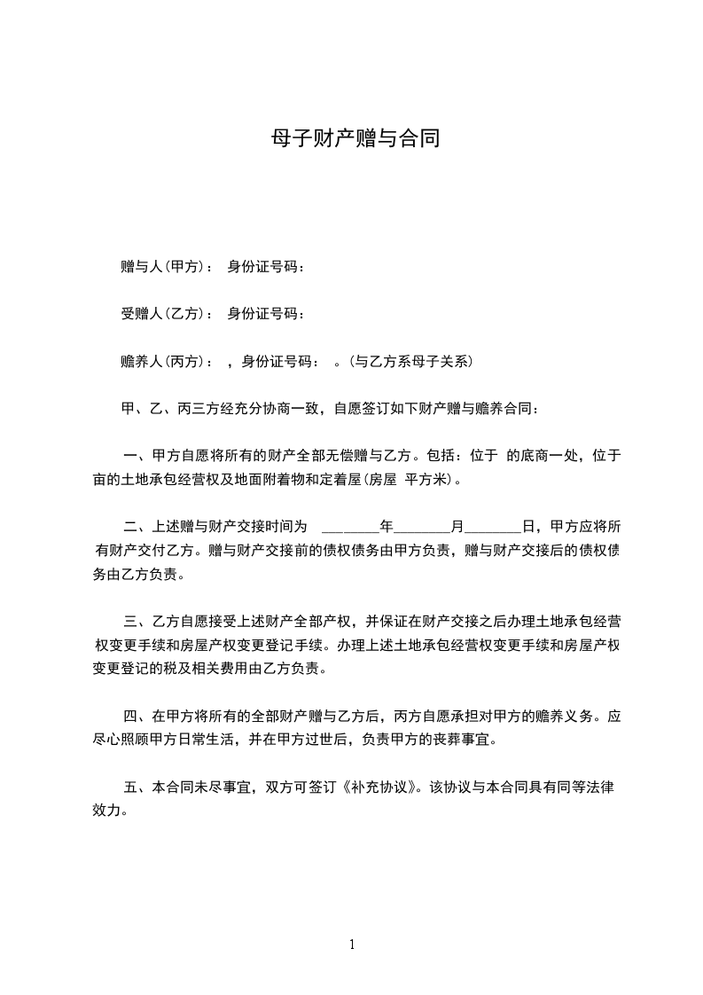 赡养人(丙方): ,身份证号码: 。(与乙方系母子关系)