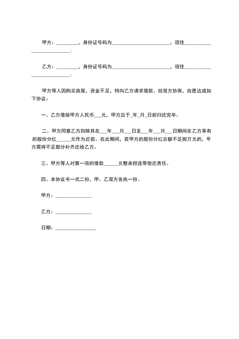 借款方:_________以下简称乙方